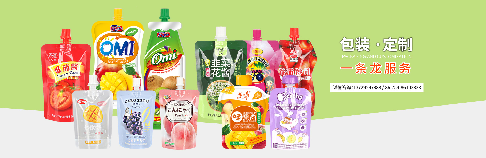 主要生產各類軟包裝,易撕果凍、巧克力封口膜,酸奶、飲料封口膜,自立吸嘴袋,企鵝包吸嘴袋,異形吸嘴袋,自立拉鏈袋,抽真空袋,高溫蒸煮袋,食品包裝卷膜,熱收縮膜標簽,日化洗滌用品等高質量的包裝產品。產品直銷國內30多個省市,并出口到美國,英國,法國,加拿大,土耳其,利比亞,巴基斯坦,印度,南非,柬埔寨,馬來西亞,印尼,菲律賓等多個國家和地區(qū)。...